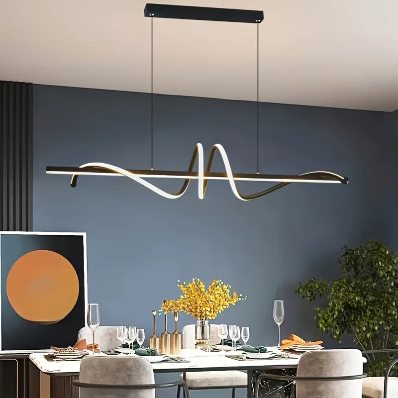 Black Luxury Hanging Lamps Fixture Suspended Linear Led Ceiling Home Decor Modern Chandeliers Pendant Light for Kitchen Island